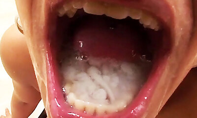 a mouth full of cum