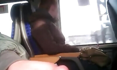 Fatty amateur on bus pretends not to watch my cock
