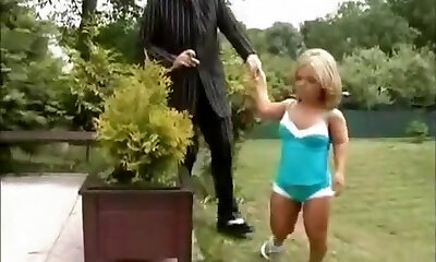 Horny Midgets Satisfy Handsome Busty Bootylicious Blonde Woman With Their Big Dicks