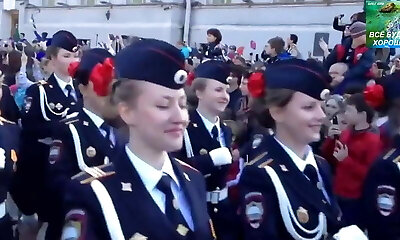 Awesome bitch in polka pop dress provides stud with great blowjob