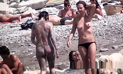sur la plage nudiste, des formes super chaudes et des bouffées tendues