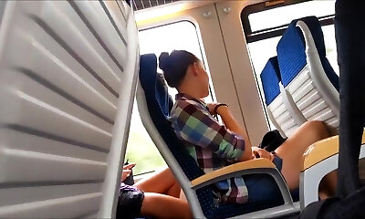 dickflash dans un train étranger montre des seins alors qu'elle la voit se masturber