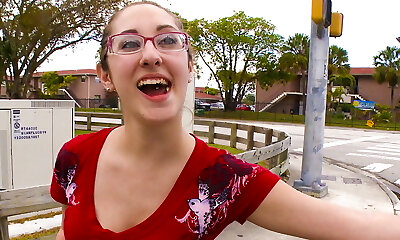 une ado mince à lunettes suce une bite et la chevauche