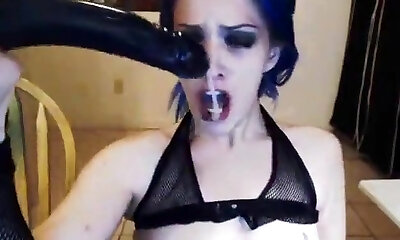 charlotte emo tatouée goûtant une saucisse de la taille d'un igname