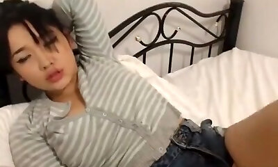 adorable asiatique se branle sur la came
