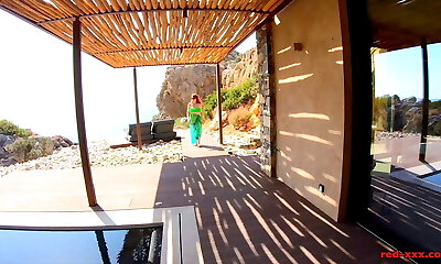 milf aux cheveux roux aux gros seins red hard - core sort au bord de la piscine