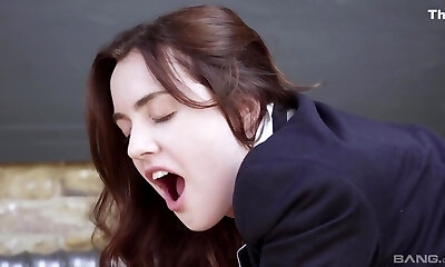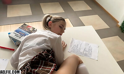 une adolescent enseignante salope avec des lunettes chaudes et des collants taquine sa grosse bite d'étudiante pour baiser sa chatte humide