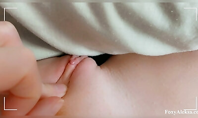 Petite pussy thinks about hump after waking up. Rubbing petite clitoris and penetrating it with a finger – juicy wet pussy